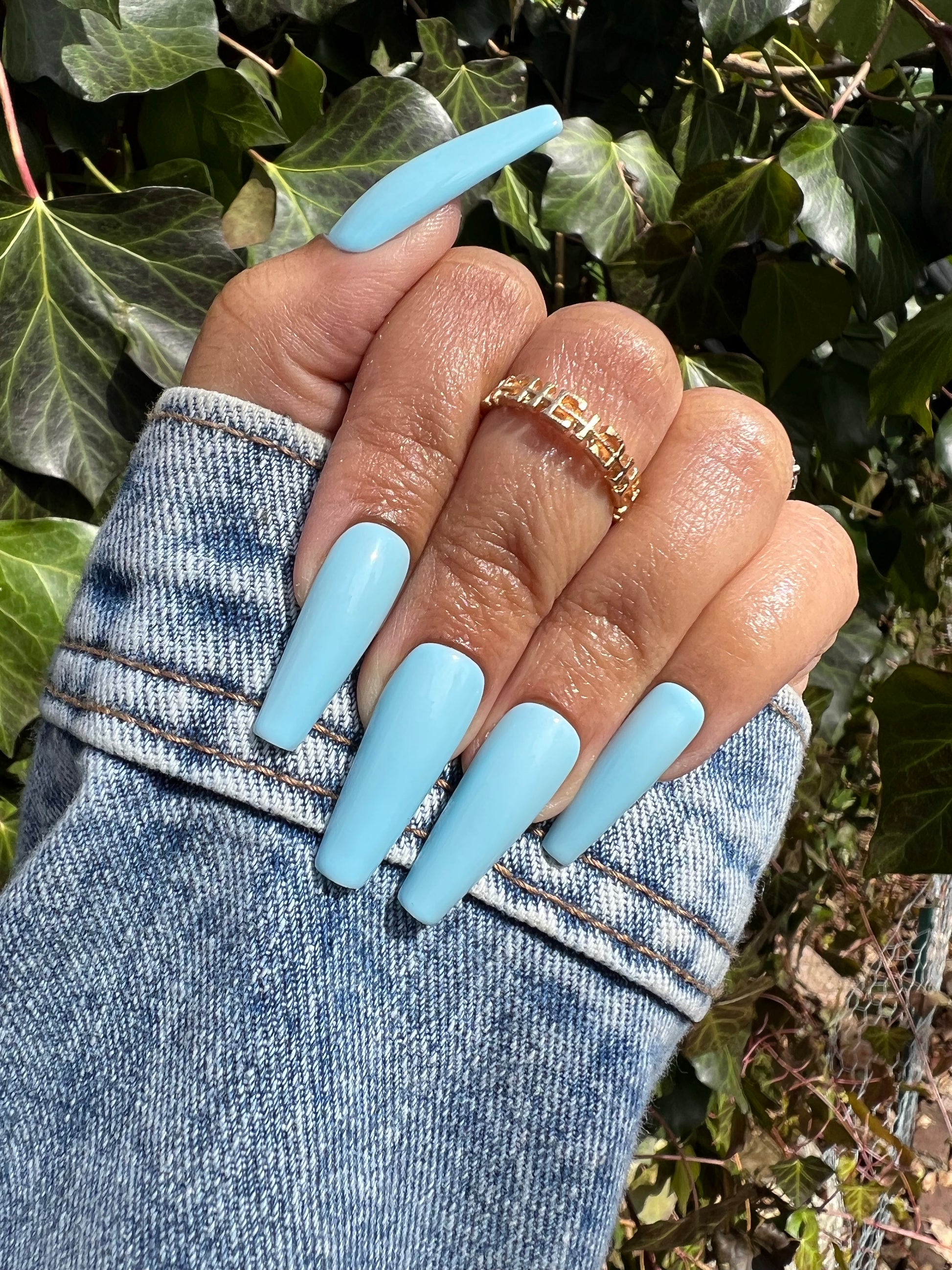A beautiful pastel blue gel color topped with gloss... leave comment for matte