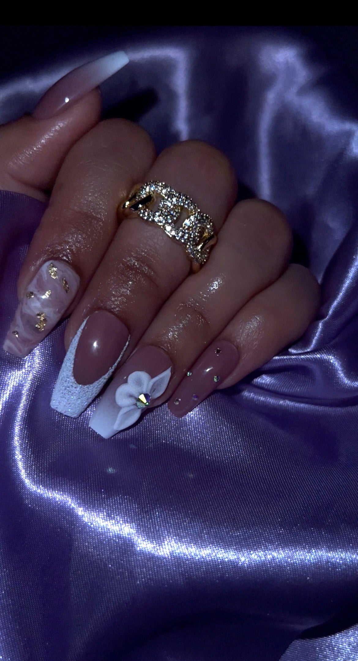 Sparkly French, ombré and acrylic flower freestyle with crystals topped with gloss