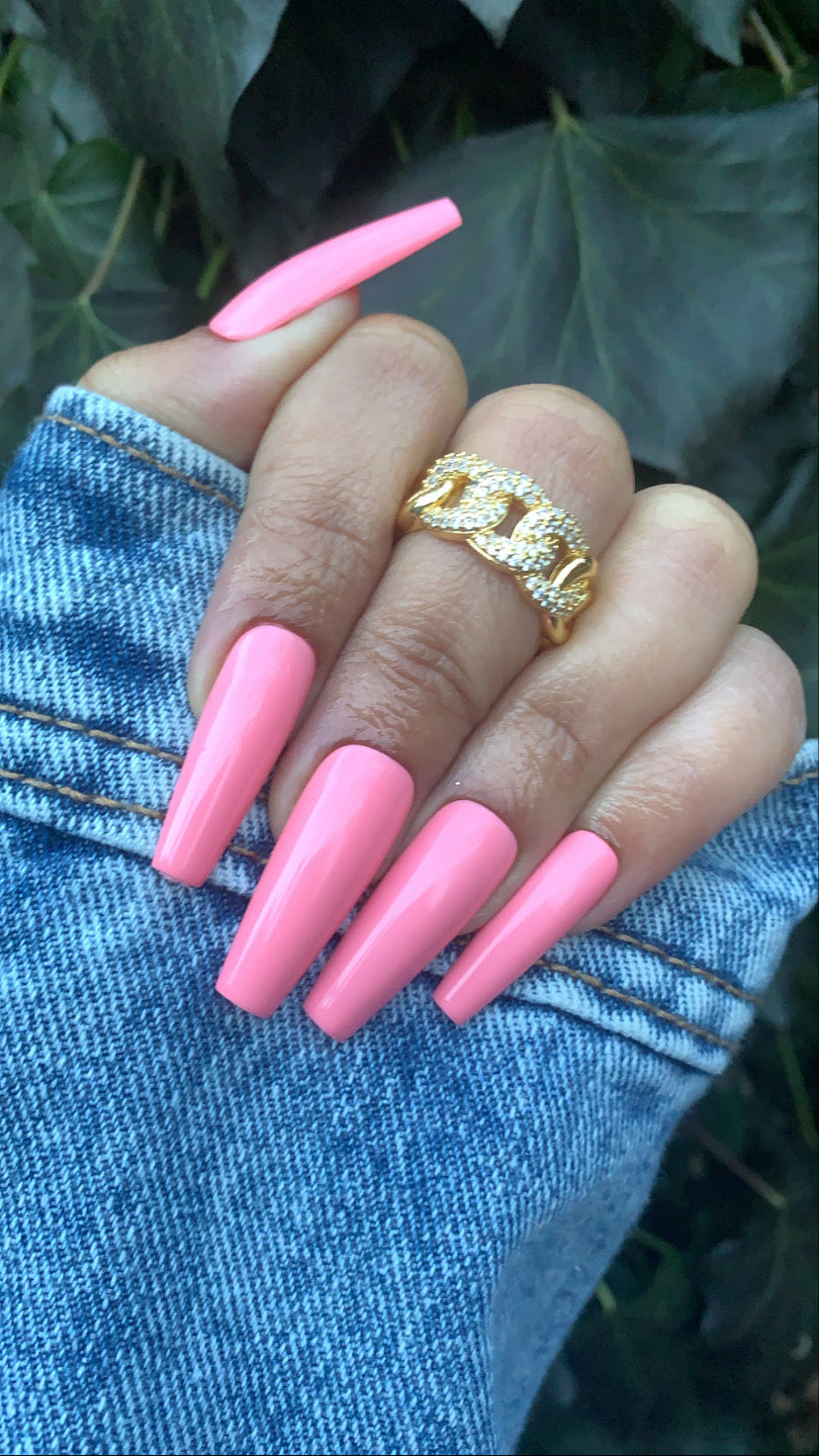 A beautiful pink gel color topped with gloss... leave comment for matte