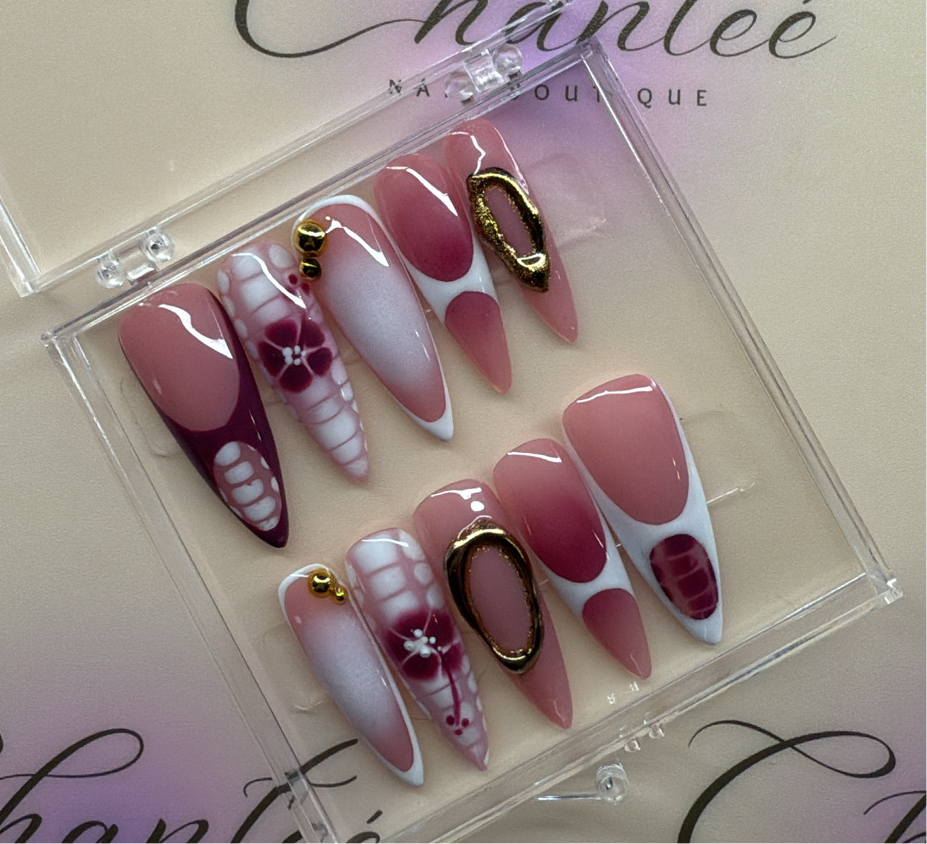 please note: short and extra short sets will be alternate French designs on thumbs as the full design may not fit
